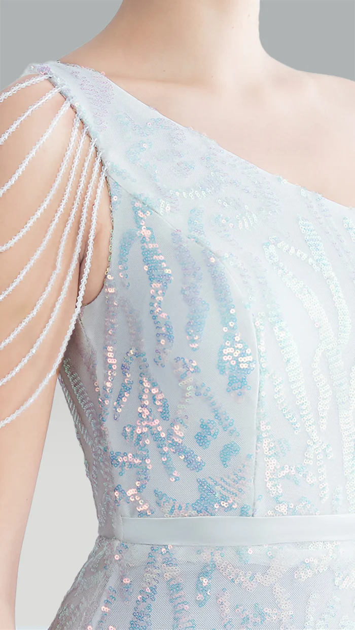 “This maxi length one-shoulder party dress is a stylish and elegant choice for formal occasions or evening events. This type of dress typically features a floor-length skirt that creates a dramatic and sophisticated look, while the one-shoulder design adds a touch of glamour and allure.